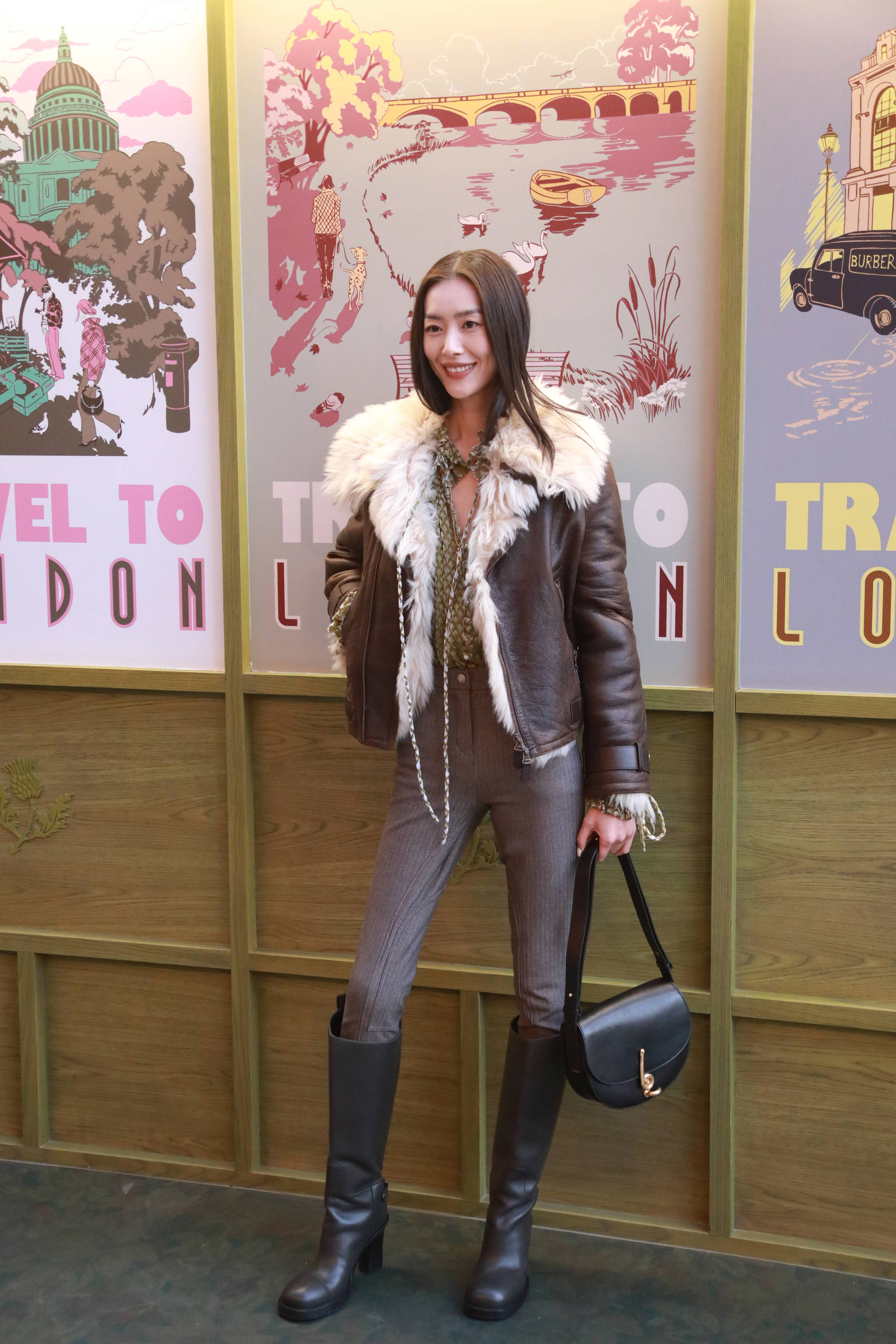 张婧仪风衣配围巾,时尚又保暖;陈丽君墨绿色皮衣搭配湿发背头造型,又酷又飒;刘雯皮夹克长靴造型,气场全开。