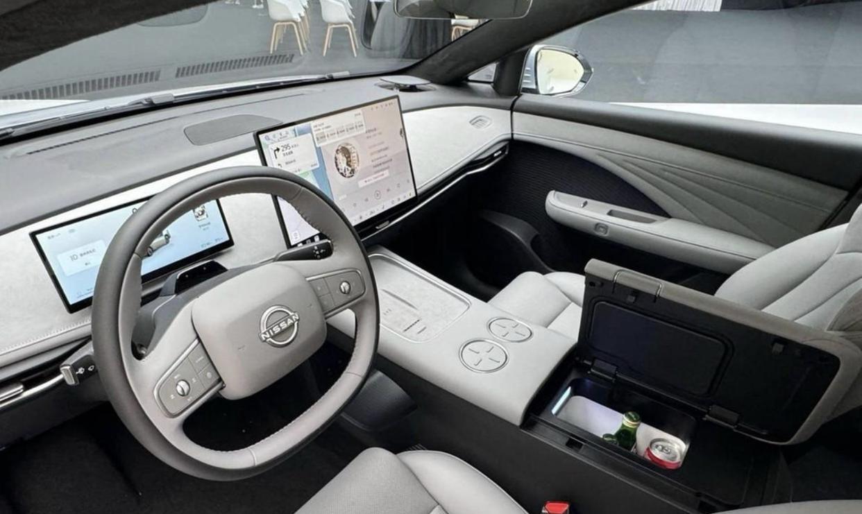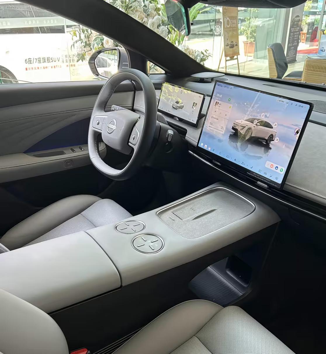 日产N6的内饰布局也十分精简,环抱式座舱采用了大面积环保可再生面料铺陈,米白色和浅灰色的交替铺陈,贯穿式的空调出风口、银色金属元素以及无线充电面板,柔软细腻的质感和众多高科技配置相互融合,还配备了悬浮式彩色液晶仪表、悬浮式的中控液晶大屏,内置了高通骁龙8295P芯片,搭载了NISSAN OS车技系统,支持更多的使用场景。